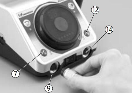 | 1 打磨筆連接(如左圖1) 使用連接打磨筆有A (9),B (14) 倆個插口, 可以連接兩只打磨筆,但是兩只打磨筆不 能同時使用。連接A 插口時按A (7)啟 動按鍵就可以啟動打磨筆。也可以按打磨 筆上面的啟動鍵。 2.腳踏開關連接。 機體電源后面有一插口,用來連接腳踏開 關。 |