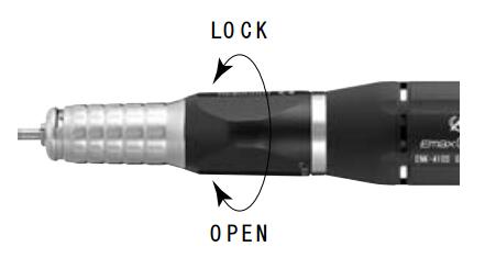 | 打磨筆前端上有標注Open(打開)和Lock(鎖緊)。 采用左松右緊,左示意圖。旋轉至Open (打開)前 端夾頭會打開,可以裝夾工具。如金剛石打磨頭,各 種橡膠磨頭,各種羊毛頭等其他柄徑3mm 工具。如 需裝夾2.35mm 工具,請更換2.35mm 夾頭。打磨筆 在旋轉使用時請勿旋轉打開更換工具,這樣會損傷打 磨筆內部。 |