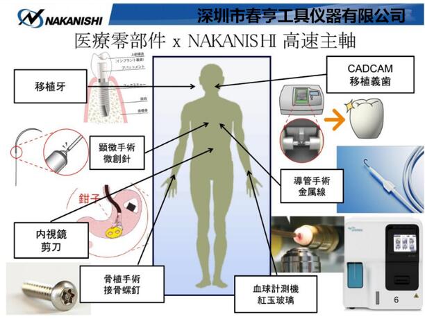 日本NAKANISHI中西NSK高速主軸隨著科技發(fā)展,被廣泛用于醫(yī)療零部件加工。使用應用案例說明,如下: