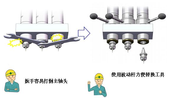 只有QC是杠桿式主軸,使用機(jī)床夾具系統(tǒng)加工中心技術(shù)。
