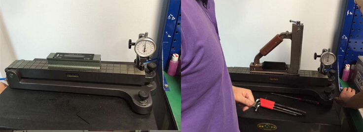 將測量工件和水平儀底部接觸面清理干凈,然后把水平儀平放在在工件上將X軸方向調(diào)平(氣泡會在水準(zhǔn)器中間)接著將水平尺旋轉(zhuǎn)90°,把Y軸方向調(diào)平。若X軸和Y軸都調(diào)好后,將水平尺任意工件的任意一個位置水平尺的氣泡都會出于中間,然后旋轉(zhuǎn)180°氣泡都會顯示中間。前提是在精密水平測試臺完成的操作。如下圖: