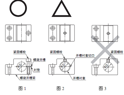 有關(guān)安裝支架上時,如圖-1所示建議使用螺旋開槽支架安裝方法。如果圖-1的方法不能安裝時,請按照圖-2的方法進(jìn)行安裝。