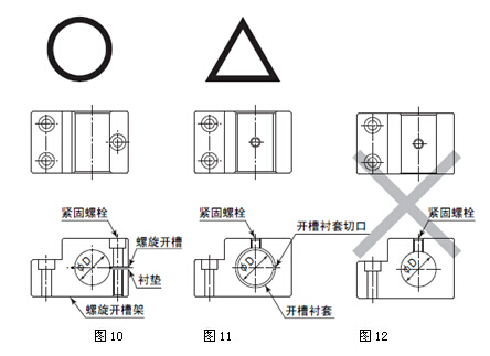 2,有關(guān)安裝支架上時,如圖-10所示建議使用螺旋開槽支架安裝方法。安裝方法請參照“③螺旋開槽支架的制作方法”。如果圖-10的方法不能安裝時,請按照圖-11的方法進行安裝。