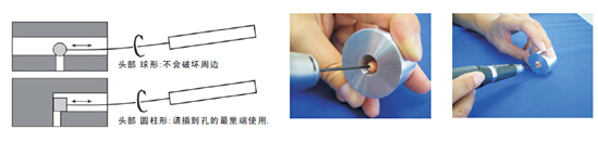 XEBEC銳必克內(nèi)孔去毛刺:可同時(shí)進(jìn)行去毛刺和內(nèi)壁拋光。?務(wù)必保證刷毛部分進(jìn)入孔內(nèi)后,再開(kāi)始旋轉(zhuǎn),否則刷毛可能會(huì)損壞或分散危險(xiǎn)。