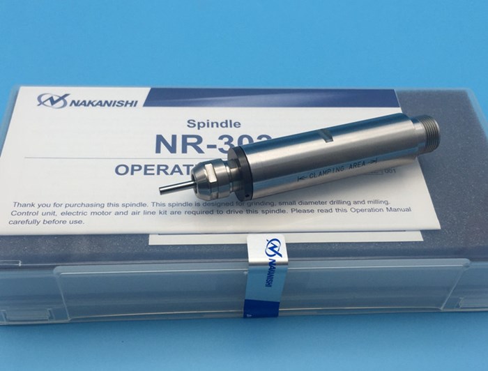 • 日本NAKANISHI高速主軸NR-303,轉(zhuǎn)速可達(dá)30000轉(zhuǎn)/min,精度2μm以內(nèi),可與氣動(dòng)馬達(dá)配套成為氣主軸,也可與電動(dòng)馬達(dá)配套成為電主軸。兩種搭配方式用于不同的加工。