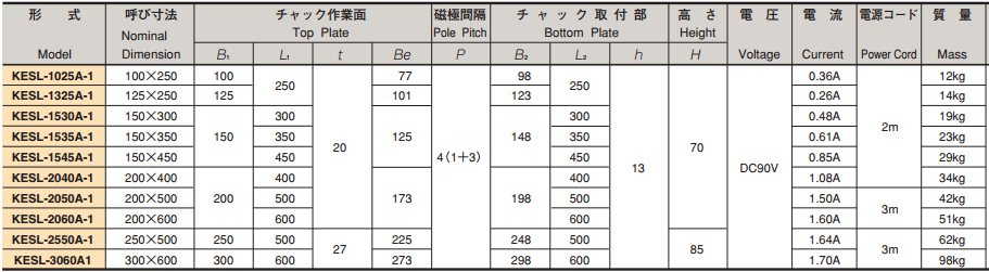 KESL-1025A日本強力電磁吸盤
