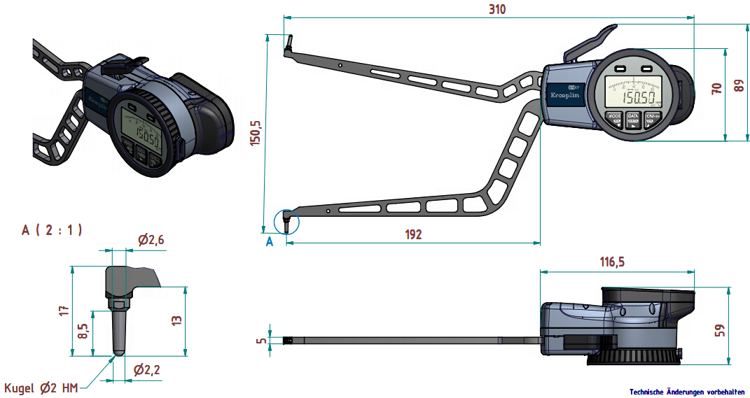 多個數(shù)顯設(shè)定功能: 絕對和相對測量, 上下限超差顯示等。