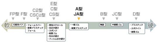 上圖所示為橡膠硬度計(jì)的種類圖, 根據(jù)試樣的種類設(shè)計(jì)不同的硬度計(jì). 符合 JIS K 6253標(biāo)準(zhǔn)的A型橡膠硬度計(jì)是最普遍最常用的一款.但是通常情況下,測(cè)量值在10點(diǎn)~90點(diǎn)之間,使用A型硬度計(jì),A90點(diǎn)以上時(shí)使用D型硬度計(jì)(硬質(zhì)材料使用),A20點(diǎn)以下時(shí)使用C型或E型硬度計(jì)(軟質(zhì)材料使用)。就是說,根據(jù)試料的種類選擇合適的機(jī)型最重要。