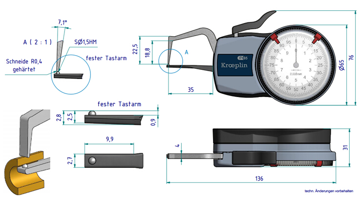 • 德國kroeplin管壁厚卡規(guī)D1R10S,測量范圍:0-10mm,喉深長度:35mm。