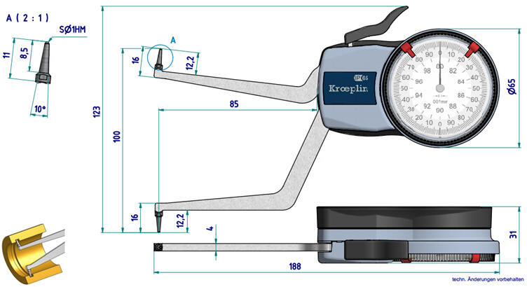 • 德國kroeplin帶表內(nèi)卡規(guī)H280,測量范圍:80-100mm 。