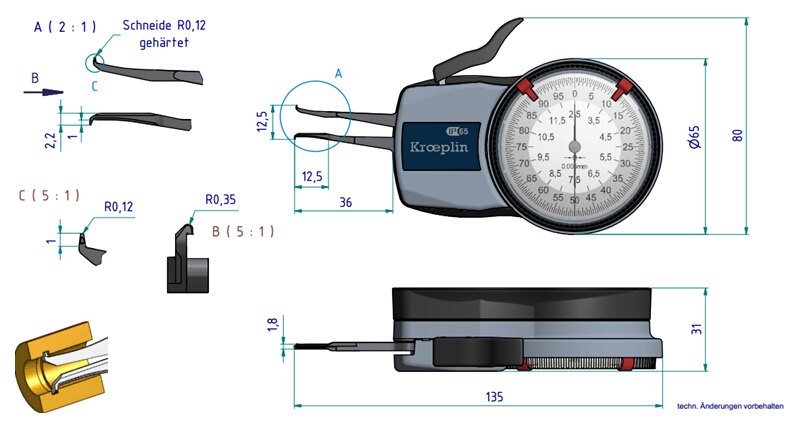 • kroeplin帶表內(nèi)卡規(guī)H102,測(cè)量范圍2.5 - 12.5 mm,精度:0.005 mm。