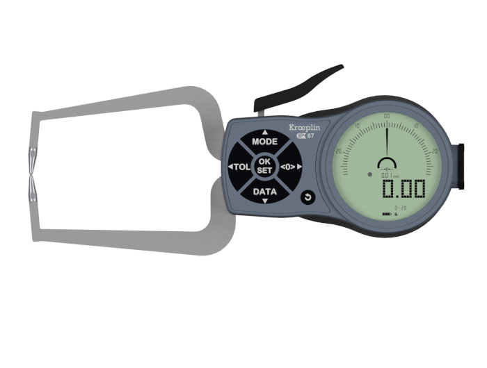 德國(guó)KROEPLIIN數(shù)顯外卡規(guī)K220,測(cè)量范圍:0至20 mm,最高探頭臂長(zhǎng):85毫米。