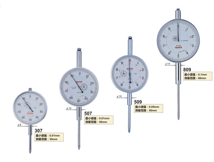 孔雀peacock大量程百分表,主要型號有307,507,509,809這幾個型號。測量范圍:30mm、50mm、80mm這幾個規(guī)格。春亨工具一級代理商,價格實惠。