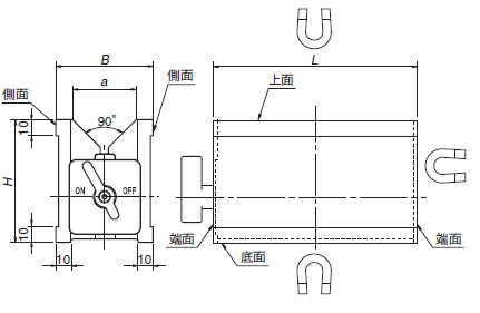 • 日本強(qiáng)力KANETEC磁性座KVA-2A,槽面、底面和背面都帶有磁性,適合固定圓鋼或不規(guī)則形狀的工件進(jìn)行加工。