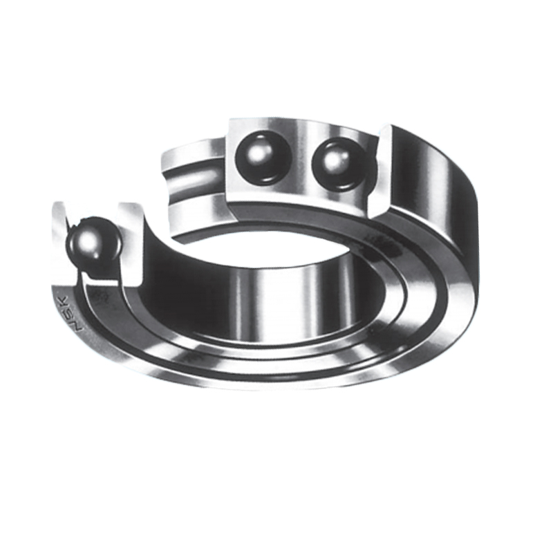 單列角接觸球軸承-這種結(jié)構(gòu)形式的軸承,可以承受徑向載荷和單向的軸向載荷。球與內(nèi)圈、外圈有15度、25度、30度或40度的接觸角。其接觸角越大,軸向載荷的承受能力越大。接觸角越小,則約有利于高速旋轉(zhuǎn)。通常,將二套軸承對置,調(diào)整內(nèi)部游隙后使用。一般,采用鋼板沖壓保持架,但接觸角小于30度的高精度軸承,主要使用聚酰胺形成保持架。