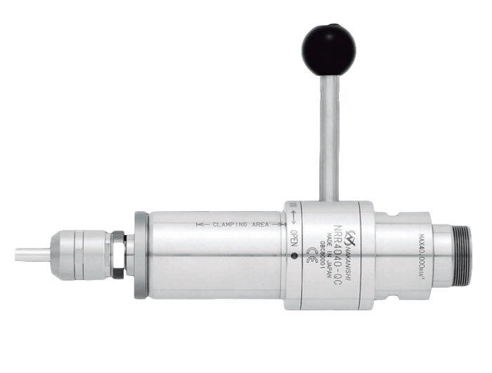 • 日本NAKANISHI手動(dòng)換刀主軸NRR4040-QC,直徑40mm,轉(zhuǎn)速高達(dá)4萬(wàn)轉(zhuǎn)/min,采用杠桿夾緊系統(tǒng),通過(guò)旋轉(zhuǎn)手柄來(lái)快速更換夾頭,可提供兩種夾頭固定架。
