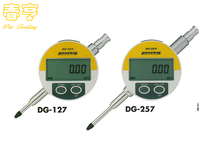 PEACOCK數(shù)顯百分表DG-257,測(cè)量范圍0-25mm,精度0.01mm。面板可270度旋轉(zhuǎn),RS323輸出功能。