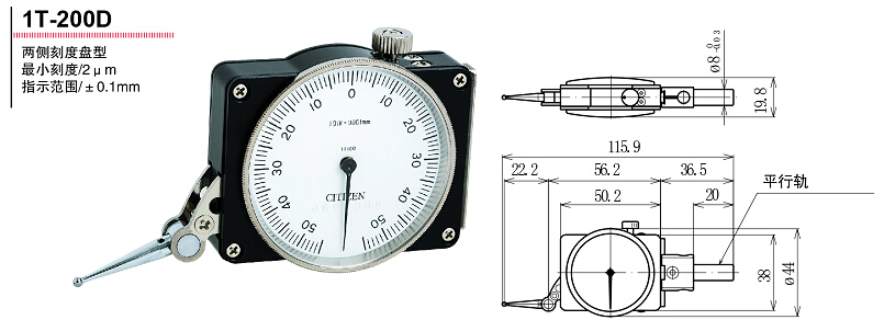 西鐵城CITIZEN杠桿式指針測(cè)微器1T-200D