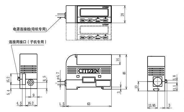 1臺母機(jī)可連接15臺子機(jī)。RS232C僅可與母機(jī) 顯示屏部分可分離安裝,可以把顯示屏單獨(dú)安裝在設(shè)備的控制面